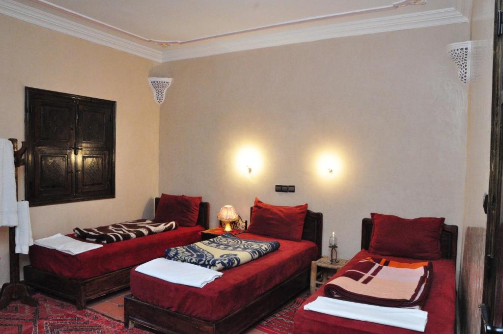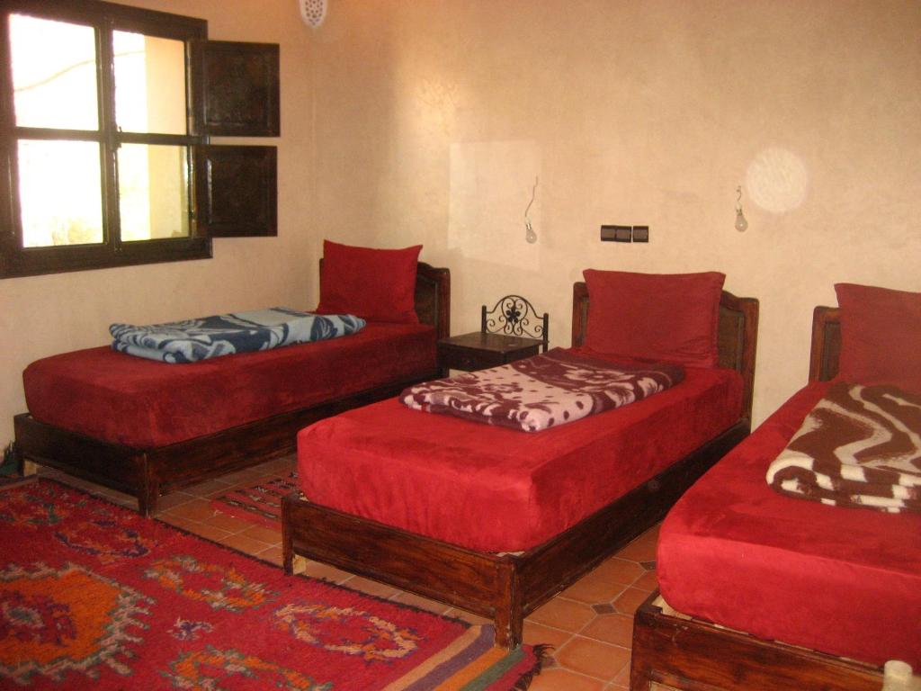 Perfect for small groups or families, this room offers three comfortable beds, essential amenities, and a warm, welcoming design for a pleasant stay.
